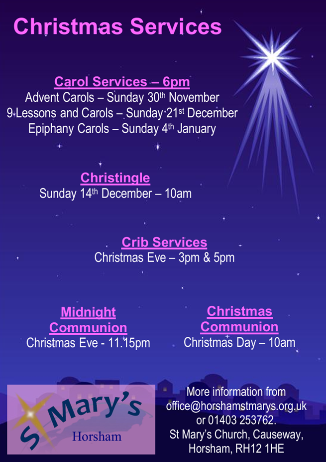 If you would like to be added to the mailing list to receive updates from the St Mary’s team, please get in touch with the Parish Office (office@horshamstmarys.org.uk) to provide your details. If you don’t have access to email please call the Parish Office on 01403 253762 to let us know the best way that we can stay in touch with you.