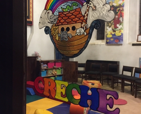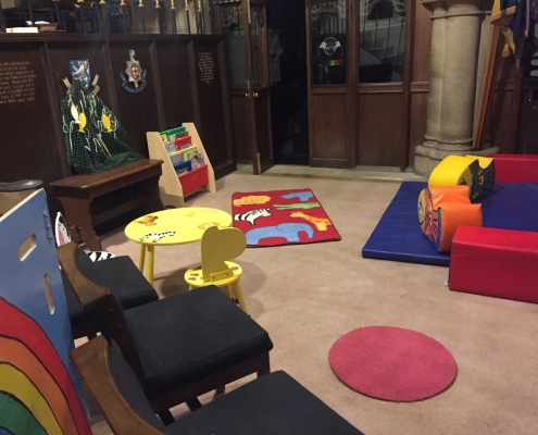 The church has a small kitchen with microwave, sink and kettle which can be used for warming bottles, snacks etc. It can be found in the modern extension to the church through the door in the far south-west corner of the church, up the stairs and it’s the door to your left. Two highchairs are available. They can normally be found in the Leslie Room or in the meeting room on the second floor of the modern extension.